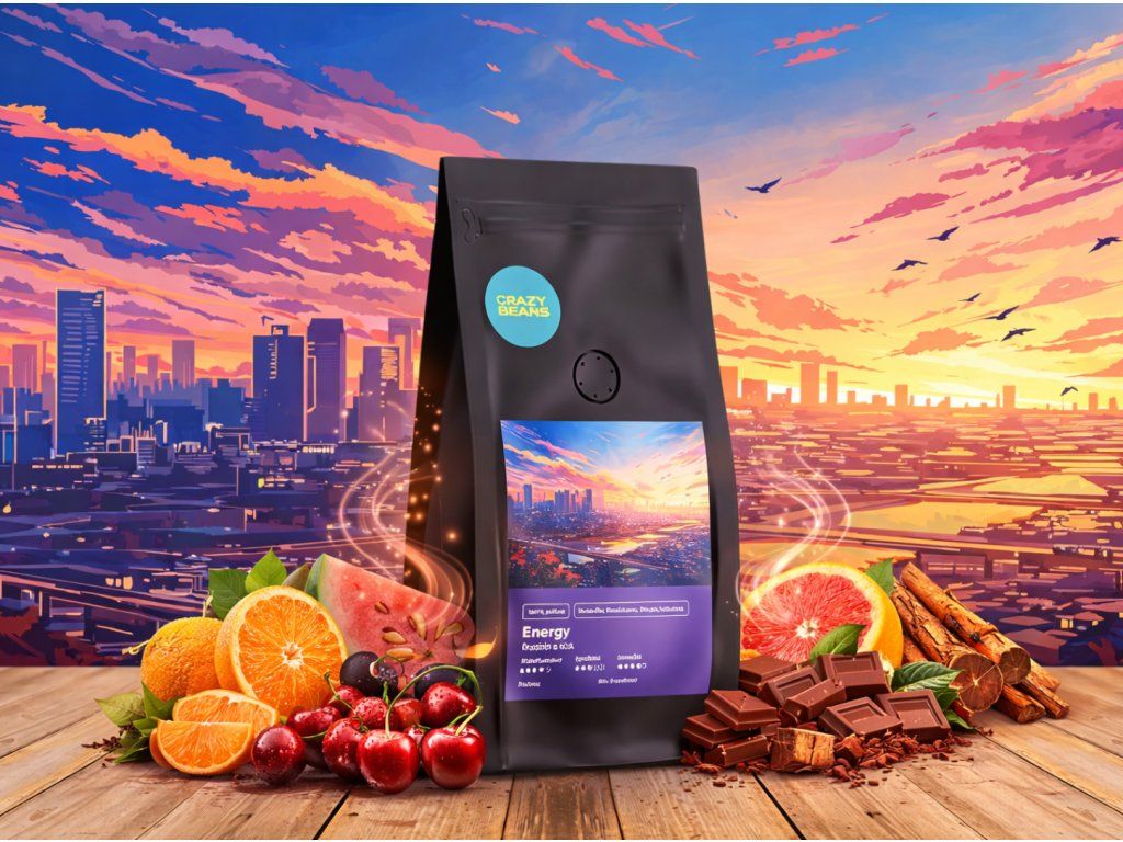 Vynikající silná a výrazná Energetická kávová směs s kombinací káv Organic a SCA s vysokou kvalitou a vynikající chutí. Kávy delikátní chuti v jedinečné kávové směsi. V chuti kávy ucítíte pomeranč, broskev, meloun, třešně, grep, cedr a čokoládu.