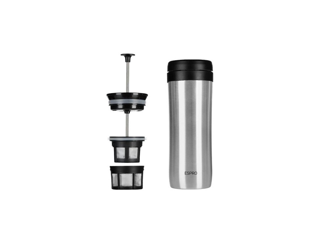 Espro Travel French Press 300 ml – nerez kombinuje výhody french pressu a termosky v jediném designu. Díky dvojitému mikrofiltru a systému pro okamžité zastavení louhování si připravíte čistou, plnou kávu bez sedimentu. Elegantní, kompaktní a připravený vyrazit s vámi – do práce, na výlet i do auta.