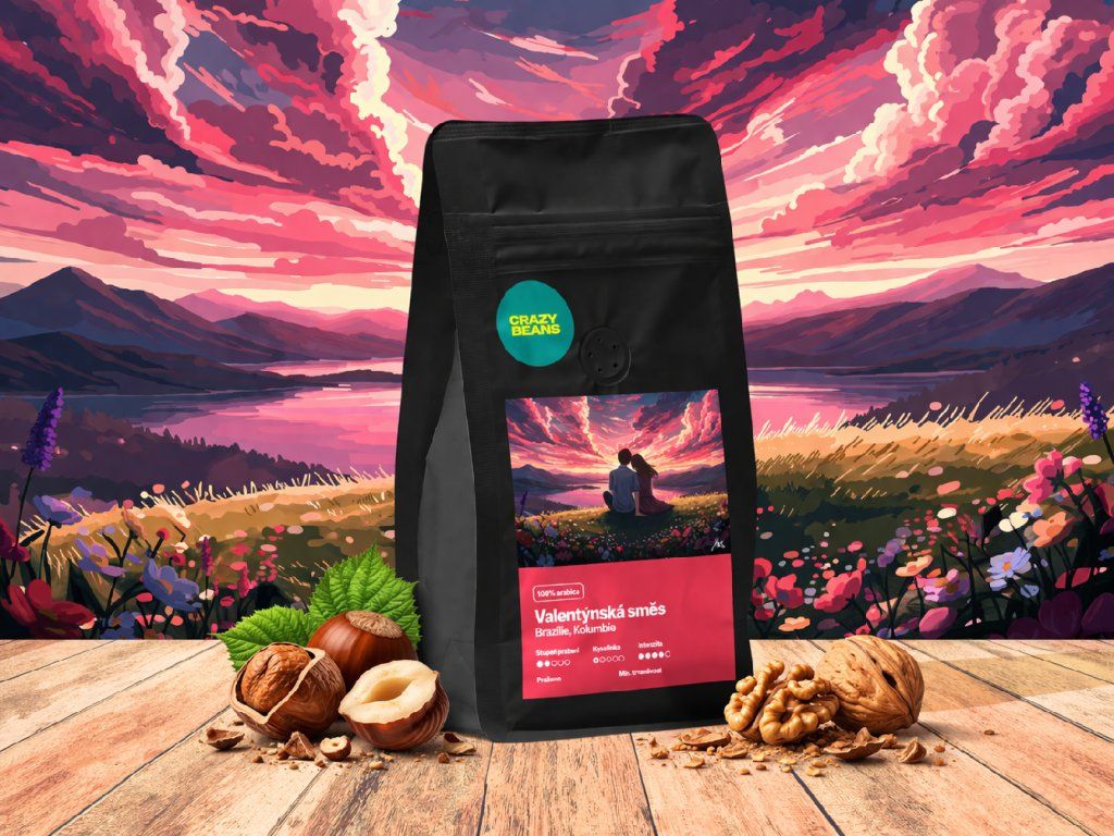 Jedinečná Valentýnská kávová směs s kombinací káv Brazílie a Kolumbie s vysokou kvalitou a vynikající chutí.