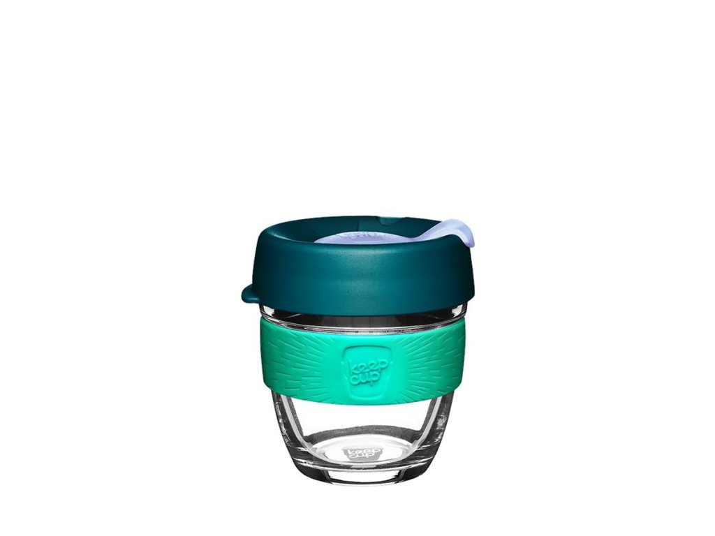 KeepCup Brew Eventide 227 ml – malý skleněný znovupoužitelný kelímek na espresso či piccolo s elegantním tmavším designem. Stylová a ekologická alternativa jednorázovým kelímkům.