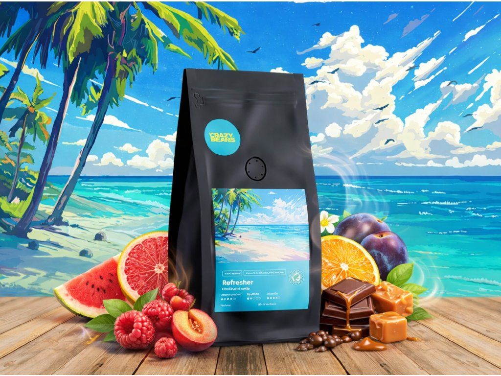 Jedinečná kombinace chuťově vyvážené kávy vytvořené pro ty, kteří mají rádi svěží chuť grepu, melounu, švestek, pomeranče, čokolády a karamelu. Káva Osvěžující směs obsahuje vynikající výběrové kávy Organic a Rainforest.