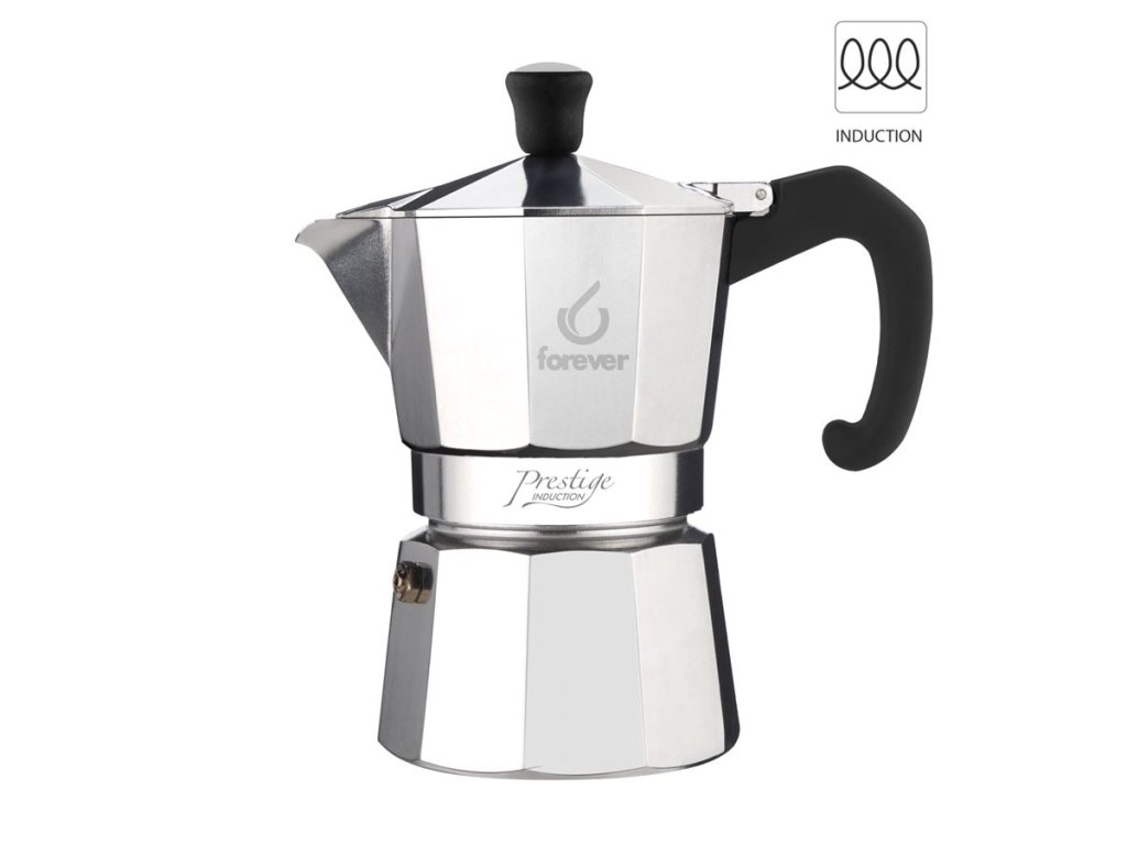 Forever Miss Moka Prestige Induction 3 šálky – moka kanvica vhodná na indukciu, ktorá prináša klasickú taliansku prípravu kávy v elegantnom nerezovom prevedení.